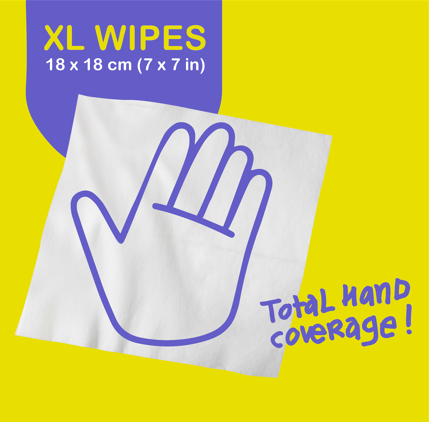 XL SIZE FOR MAXIMUM COVERAGE: Extra-large 18 × 18 cm wipes that provide effective cleaning and greater comfort. Full hand coverage for safer hygiene with no direct contact.