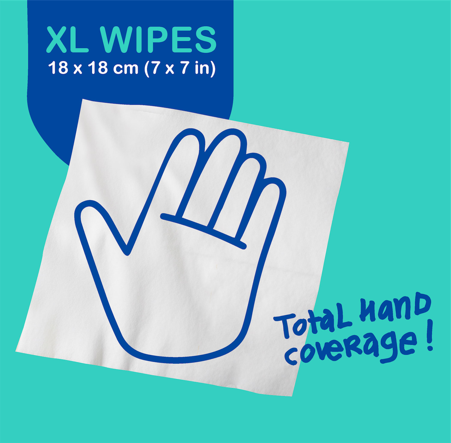 XL SIZE FOR MAXIMUM COVERAGE: Extra-large 18 × 18 cm wipes that provide effective cleaning and greater comfort. Full hand coverage for safer hygiene with no direct contact.