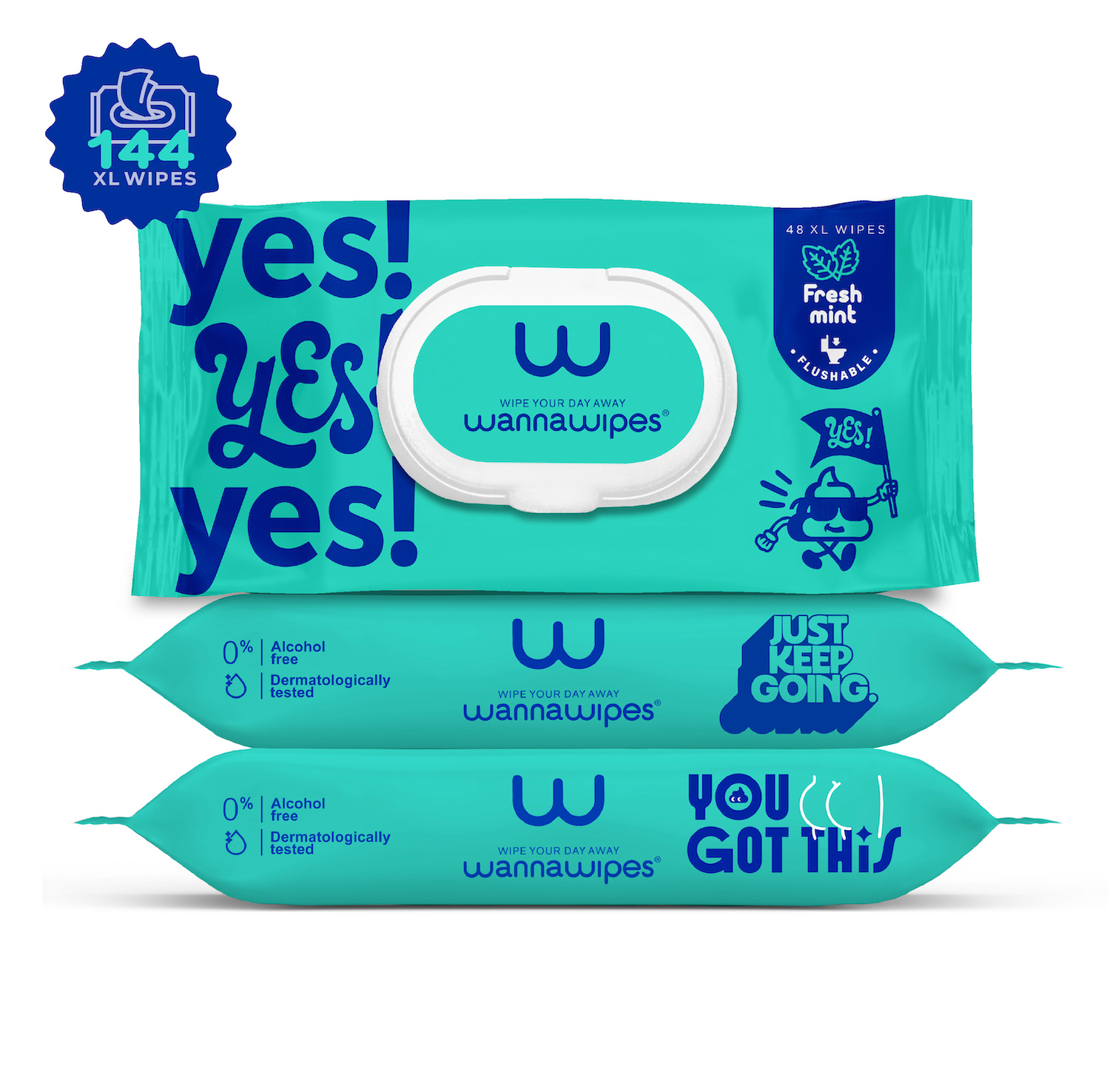 Flushable XL Wipes for the whole family – 144 Count (3 Packs) – Mint and Vitamin E – Refreshing and Soothing Effect – Extra Thickness – Biodegradable 100% Plant Based Fibers – Safe to Flush – Fresh Mint – RRP 15,99 €